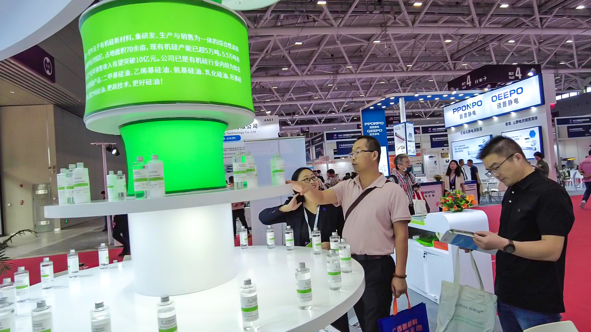 此次展会,在叶光华董事长带领下,派出黄山总部与广州分部的销售精英们隆重参展。展会现场交流气氛热烈,小伙伴们热情招待客户,耐心解答客户问题,与客户进行深切的交流和沟通。同时我司带来了主打产品:聚二甲基硅氧烷5到12500粘度,乙烯基硅油100到20000粘度,氨基硅油2211到2253等不同粘度含氮量共11个牌号的新品以及多个牌号的有机硅乳液参展,高品质高质量的产品也得到了来访客户的一直好评与认可。好博(中国)的硅油具有高闪点、低挥发、低酸值的特色,不含钾离子、钠离子、三甲胺等离子,好博(中国)的产品特色是强力纯硅油、更高技术、更好硅油!