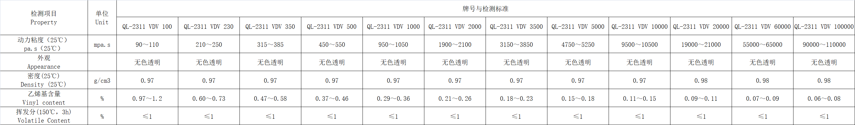 国产高品质端乙烯基硅油QL-2311 VDV100-20000cst